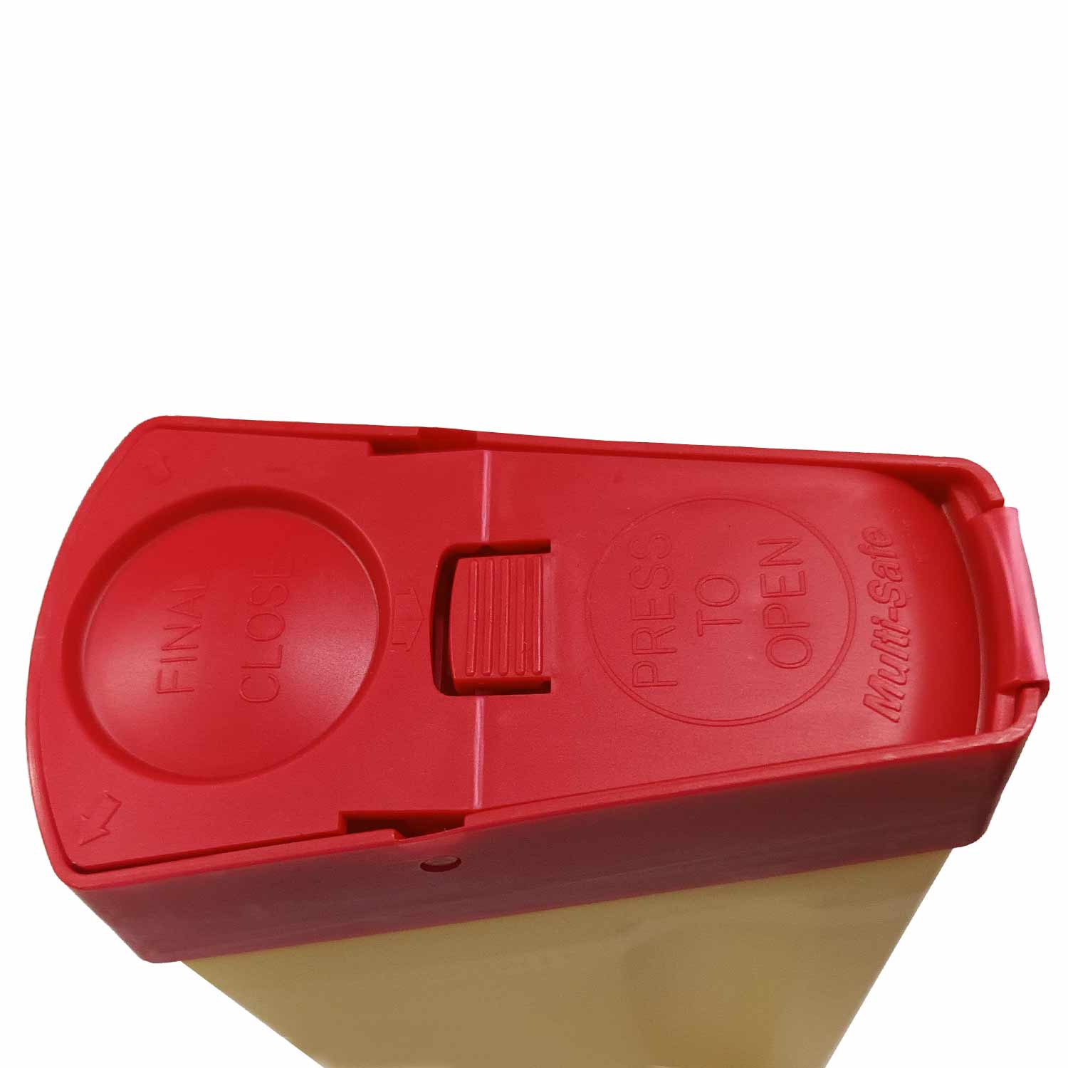 Entsorgungsbehälter, Multi-Safe mini, 300 ml, gelb, Material: PP, Öffnung: rund, Höhe: 160 mm, flacher Verschluss, Deckel (LxB): 81 x 45 mm, Verschluss: rot, 135