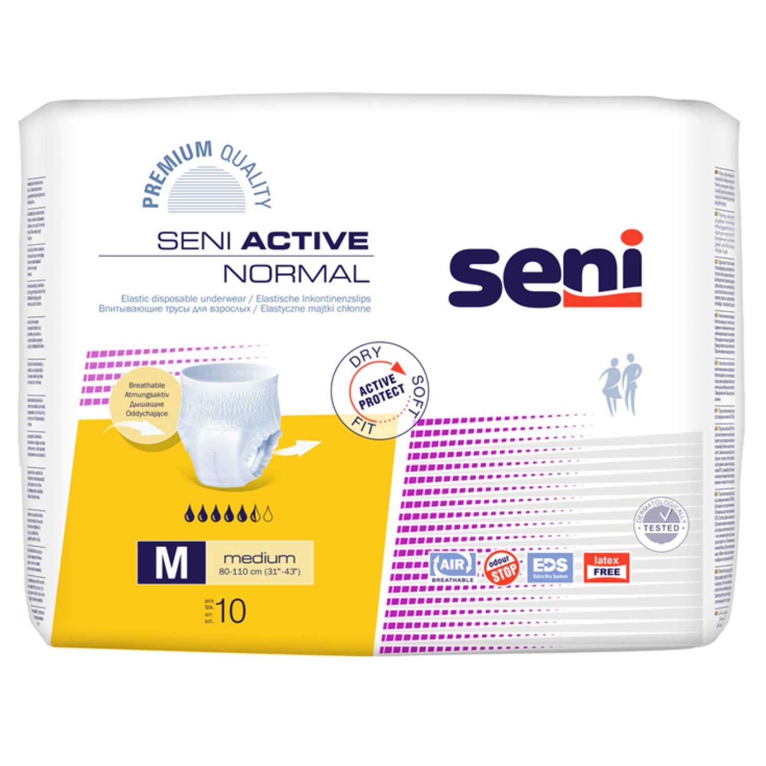 Die elastischen Inkontinenzpants Seni Active Normal sind die perfekte Lösung für Personen mit leichter bis mittlerer Blasenschwäche, die ein aktives Leben führen und Diskretion schätzen.